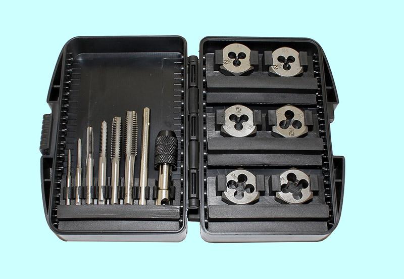 Вороток и по 6 метчиков и шестигранных плашек М3-М10 9ХС в пласт. футляре (13 поз.) SP013-1 "CNIC