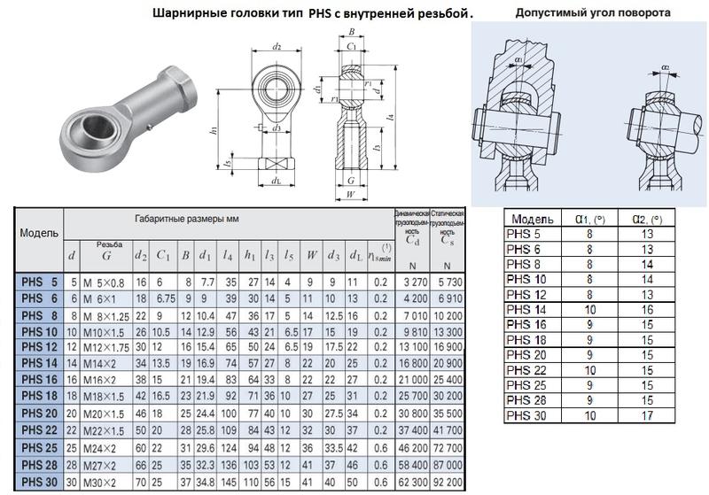 Головка шарнирная PHS18 d 18,0х23,0х 92мм с внутренней резьбой М 18х1,5 "CNIC"