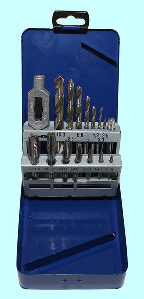 Набор резьбонарезной из 7 метчиков М3-М12 9ХС +вороток и 7 сверл d2.5-d10.3 в металлическом футляре (15 поз.) SM015-1 "CNiC"