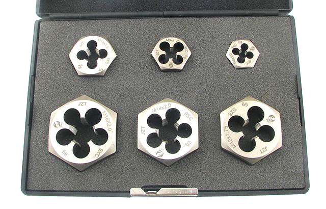 Набор плашек шестигранных из 6-ти штук М 6-М16 9ХС DIN382 в дер. коробке "CNIC"