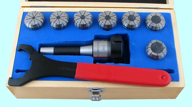 Патрон Цанговый с хв-ком R8 (7/16"- 20UNF) с набором цанг ER40 из 7шт (6-25мм) "CNIC"
