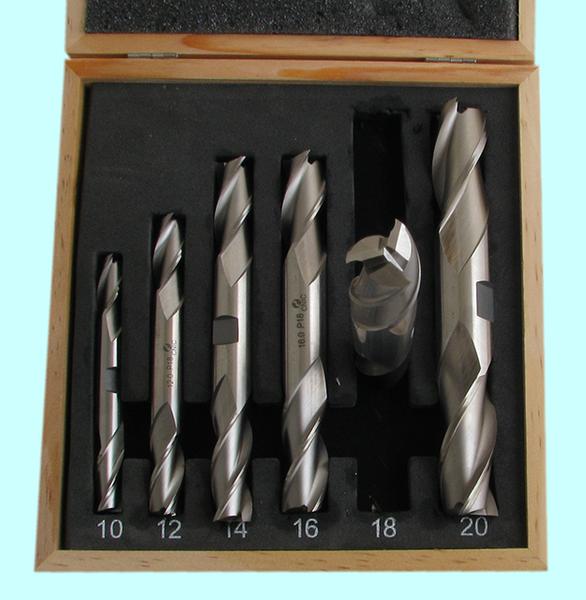Набор Фрез концевых 2-х сторонних по металлу из 6шт. (d10, 12, 14, 16, 18, 20мм Z=3) Р18 в деревянном футляре "CNIC"