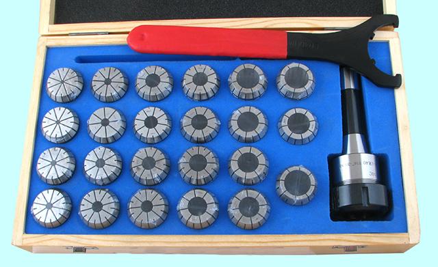 Патрон Цанговый с хв-ком R8 (7/16"- 20UNF) с набором цанг ER40 из 23шт (4-26мм) "CNIC"
