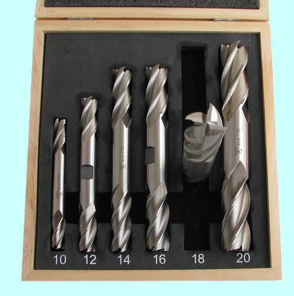 Набор Фрез концевых 2-х сторонних по металлу из 6шт. (d10, 12, 14, 16, 18, 20мм Z=4) Р18 в деревянном футляре "CNIC"