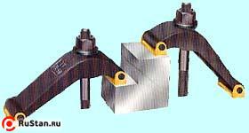 Предназначен для фиксации деталей, заготовок на столе станка с шириной паза 13.7-14мм. Латунные лапки на шарнирах шириной 40мм позволяют фиксировать детали с обработанными поверхностями не повреждая их. Гайка М12 со сферической вставкой позволяет надежно и плотно зафиксировать заготовку для дальнейшей обработки.