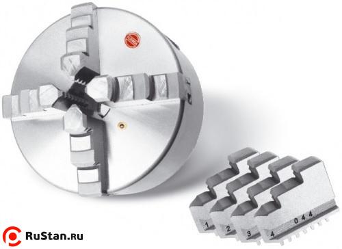 Патрон четырехкулачковый самоцентрирующий с креплением непосредственно на фланцевые концы шпинделя по ГОСТ 12593-93 (ИСО 702-3-75). Материал чугун с шаровидным графитом, крепление 4 болта М16, с комплектом прямых и обратных кулачков.