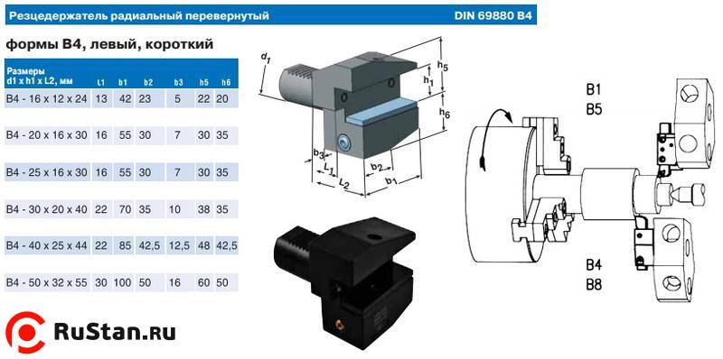 Резцедержатель радиальный перевернутый левый короткий (тип В4) с хвостовиком VDI 3425 по DIN 69880 (ГОСТ 24900-81). Применяется для токарной обработки на станках с числовым програмным управлением (ЧПУ).