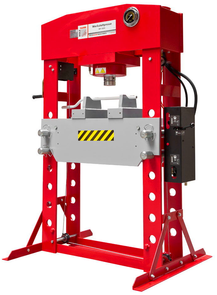 Мощный гидравлический пресс WPP 100MBK с электрическим насосом и передвижным двухскоростным поршнем для профессионального использования. Предназначен для любых монтажных и ремонтных работ, например: рихтовки осей, несущих, валов и т.д.; выпрессовывание и запрессовка подшипников, болтов и втулок; прессовка и смятие; испытания под нагрузкой, испытания сварки и многое другое.