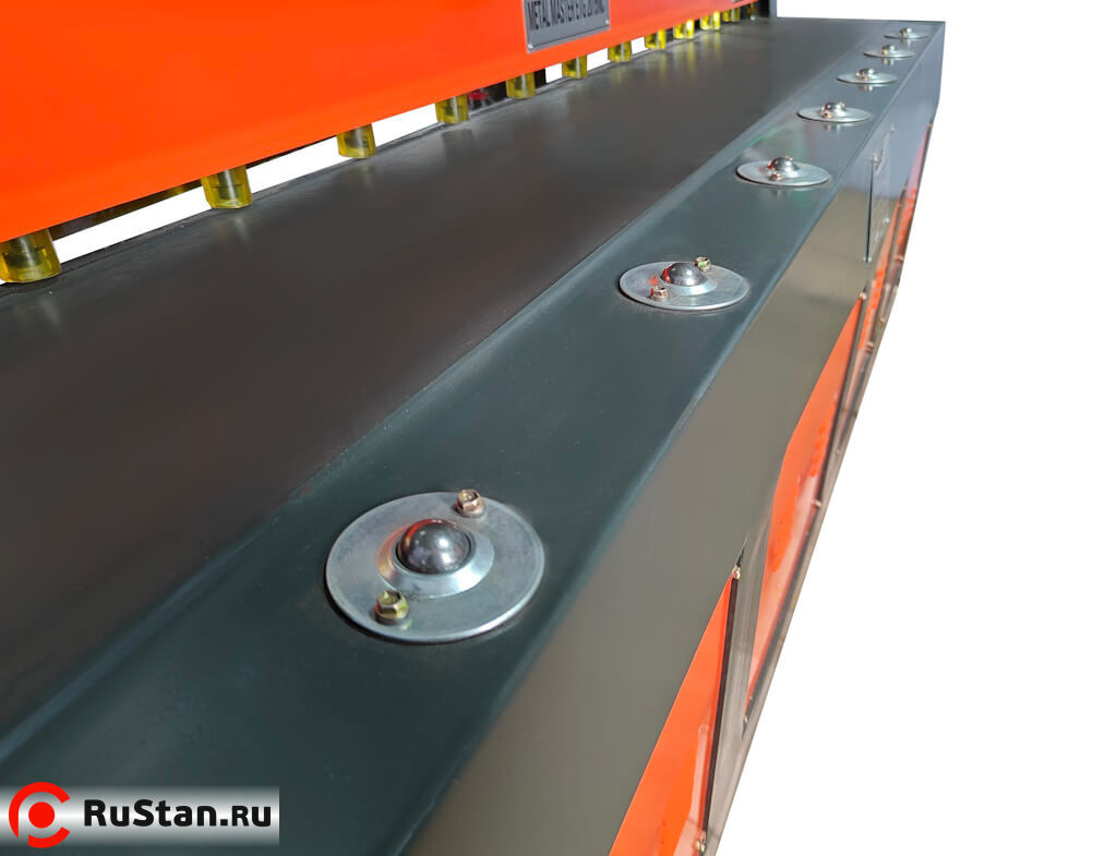 • Рабочий стол гильотины оснащен металлическими роликами, что облегчает позиционирование и перемещение листа по столу, а также подачу в зону резания.