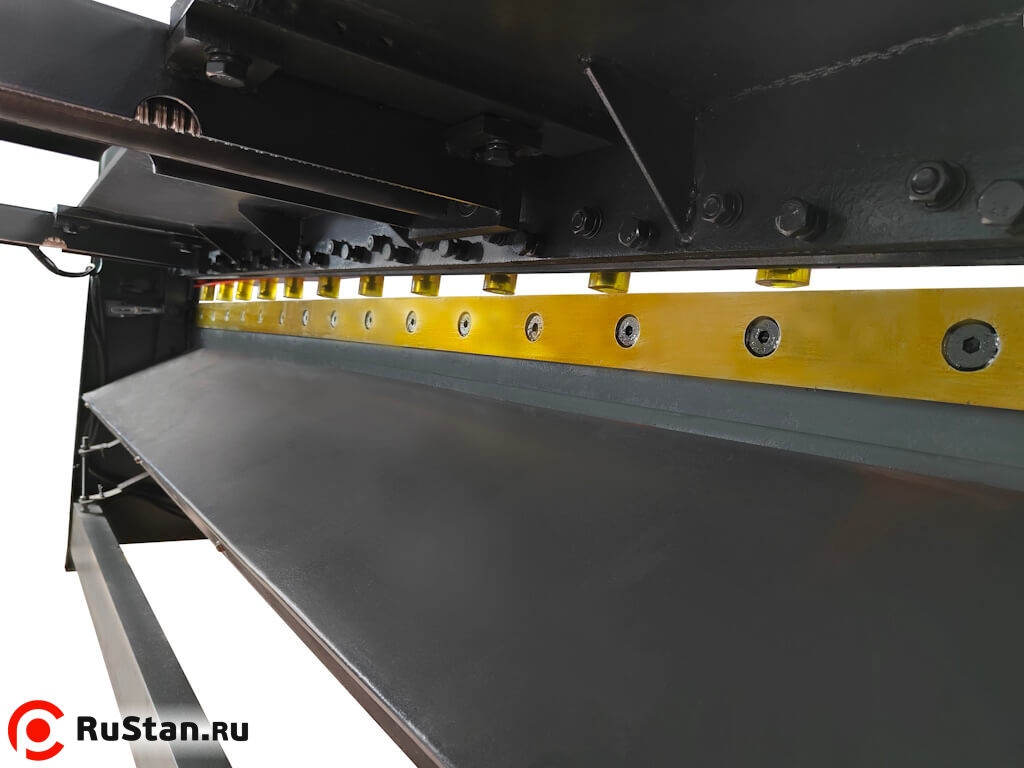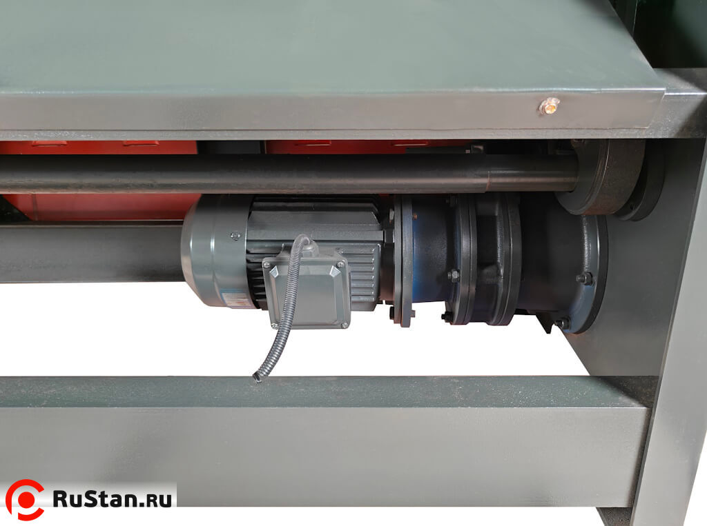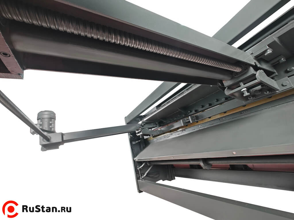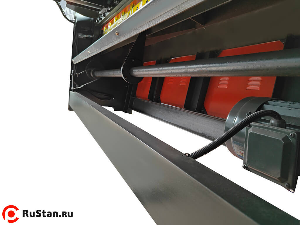 • Приводной вал расположен под рабочим столом гильотины. Это обеспечивает компактную конструкцию и плавную работу станка.