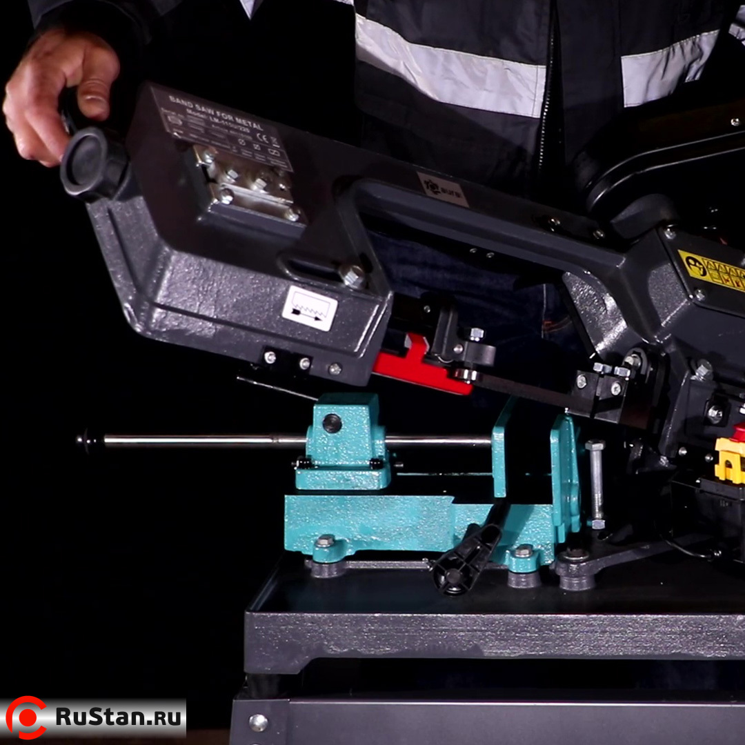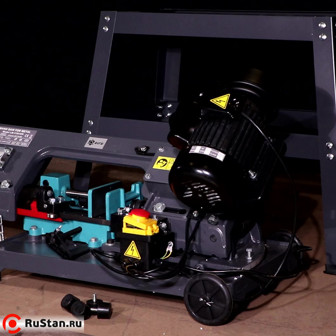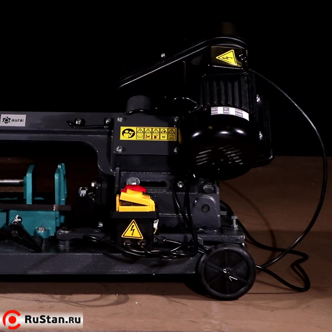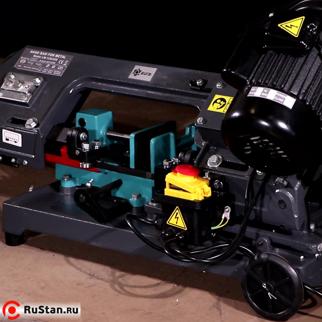 Станок питается от сети 220 В. Ленточная пила AURA LM-115U/220 имеет возможность вертикальной резки. Размер ленточного полотна 13 x 0,65 x 1640 мм. Шаг полотна подбирается исходя из разрезаемого материала.