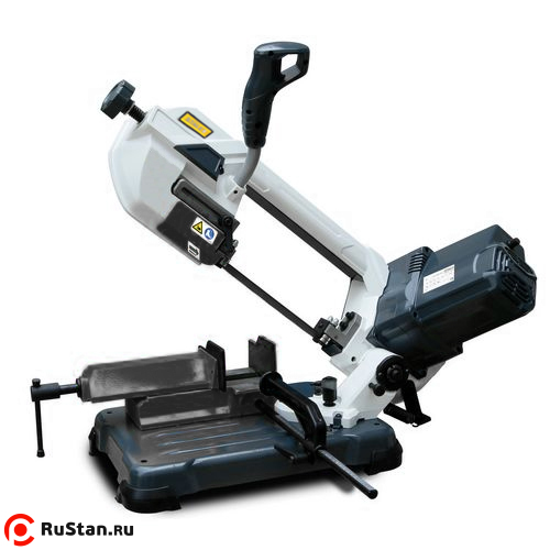 Режущий инструмент – бесконечная сварная ленточная пила. Полотно натягивается с помощью натяжного шкива. Движение режущего полотна производится через редуктор. Зажим заготовки осуществляется тисками вручную, подача заготовки - также вручную.