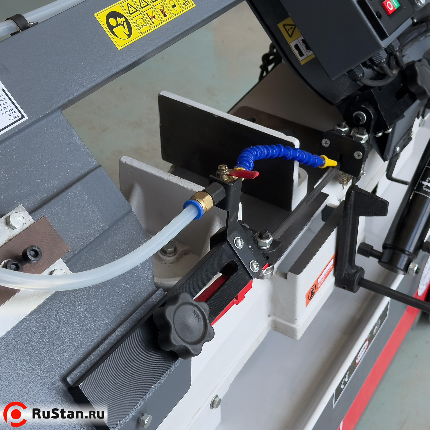 Станок состоит из чугунных деталей с металлическими кожухами. Эта комбинация материалов обеспечивает достаточную жесткость станка при максимальном резе. Пилу можно настроить для резки под углом 45°и 90°. Пильная лента приводится в действие трёхфазным двигателем. Скорость опускания пильной рамы можно регулировать демпферным гидроцилиндром. Модель оснащена системой охлаждения СОЖ.