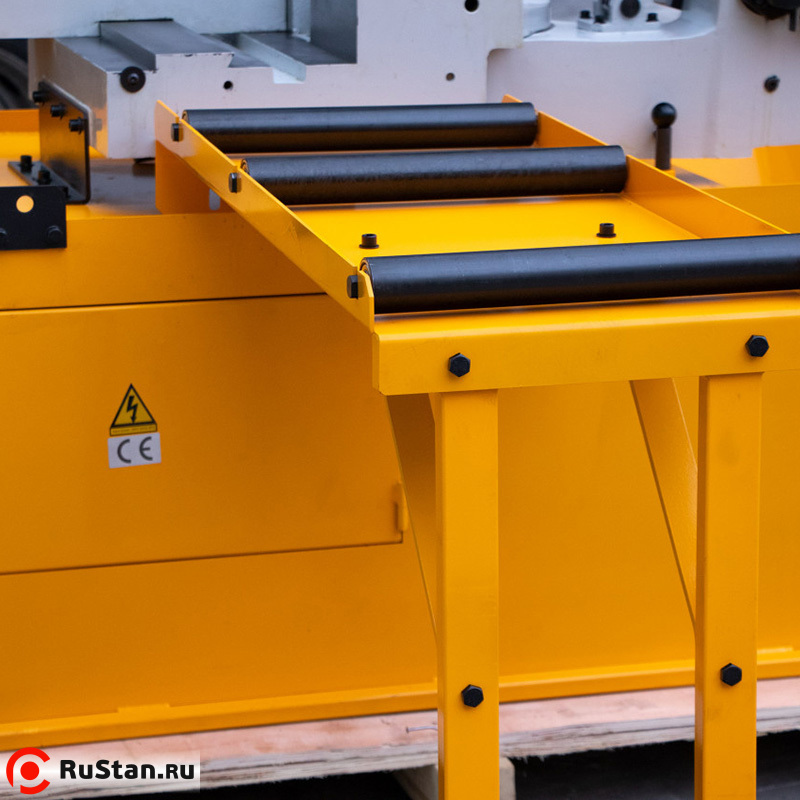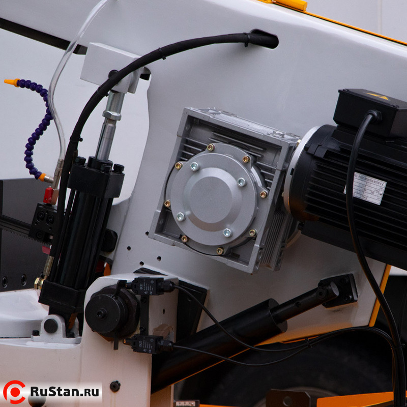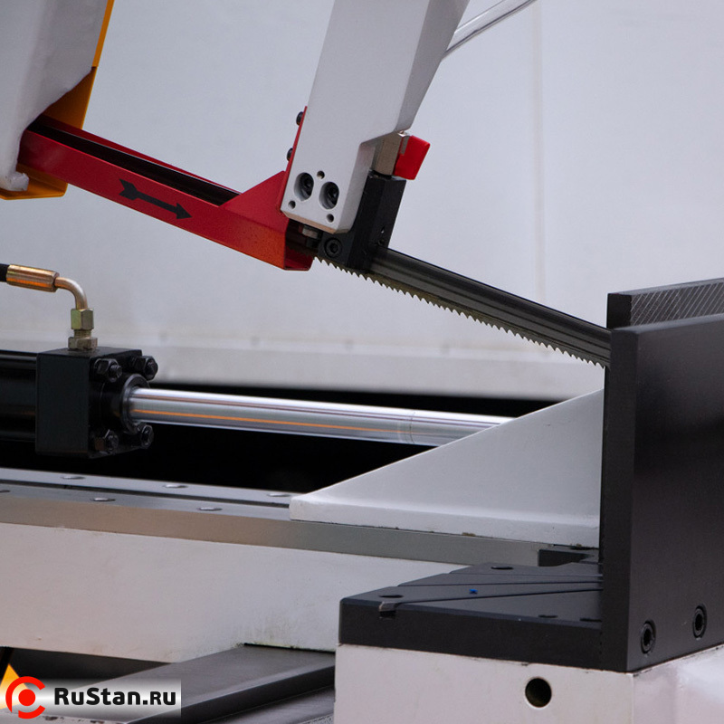 Модель оснащена гидравлическими тисками и гидроприводом с регулировкой подачи пильной рамы на деталь при резке.