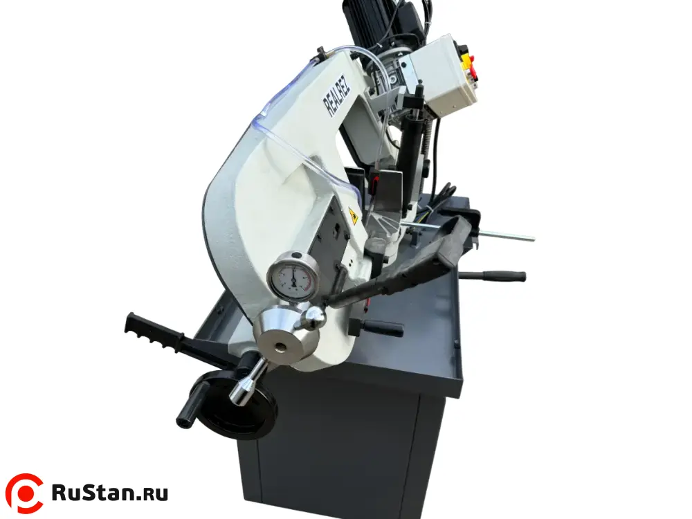 Скорость подачи во время резания осуществляется гравитационно. Оператор запускает машины, нажав на кнопку пуска и устанавливает скорость резания. После завершения цикла, машина автоматически останавливается и оператор поднимает консоль в исходное положение. Использование пилы шириной 27 мм позволяет в полной мере осуществлять резку конструкционной стали, нержавеющей стали и других материалов. Направляющие изготовлены из твердого сплава для превосходной точности и прямолинейности реза. Это оказывает огромное влияние на сохранение ленты, ее жизнеспособность, точность и качество резки. Скорость подачи регулируется на панели управления станком. По окончании резки станок автоматически выключается.