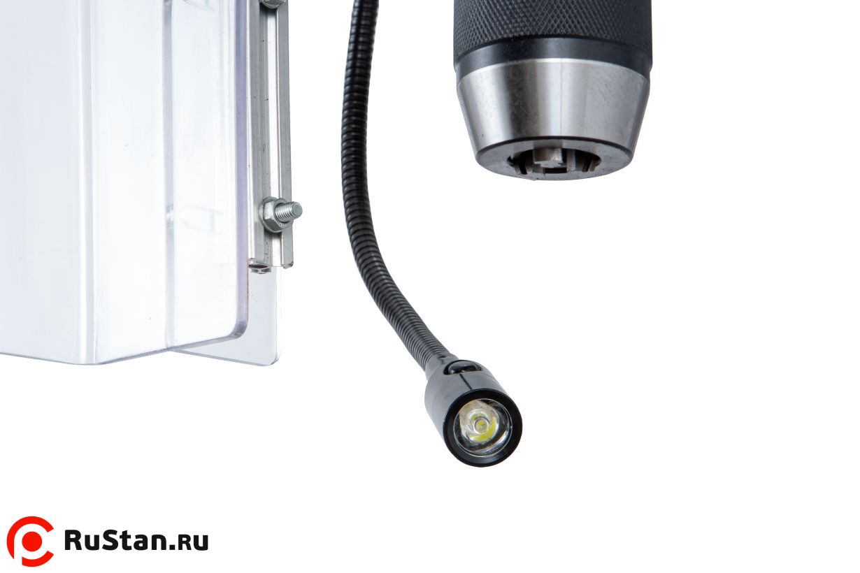 Станок оснащён лампой местного освещения с гибким держателем, который обеспечивает удобное размещение и направление света в зону резания.