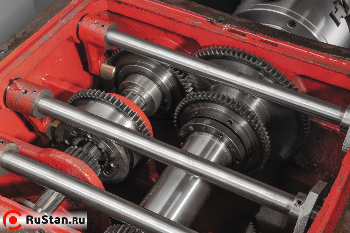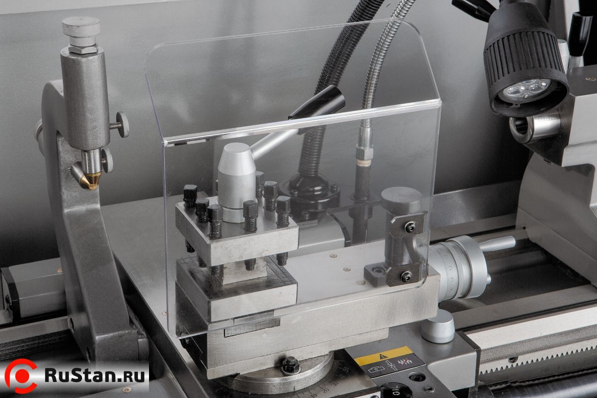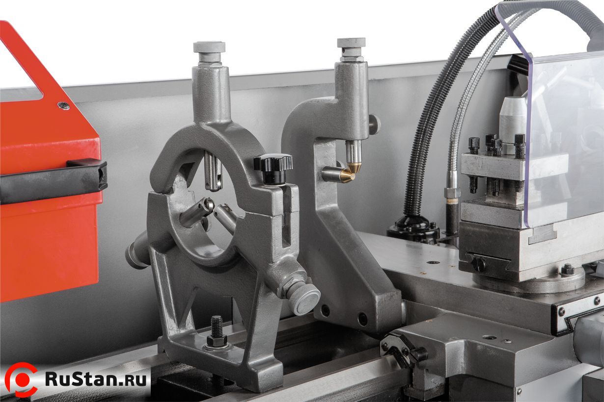 Фартук суппорта работает в масляной ванне, задняя бабка регулируется в поперечном направлении, что дает возможность обточки конических заготовок. Станок поставляется в максимальной комплектации. В нее входят система подача СОЖ, люнеты, планшайба, дополнительный 4-х кулачковый патрон, переходная втулка, вращающийся и не вращающийся центры, опоры для выставки станка, набор инструмента и лампа освещения рабочей зоны.