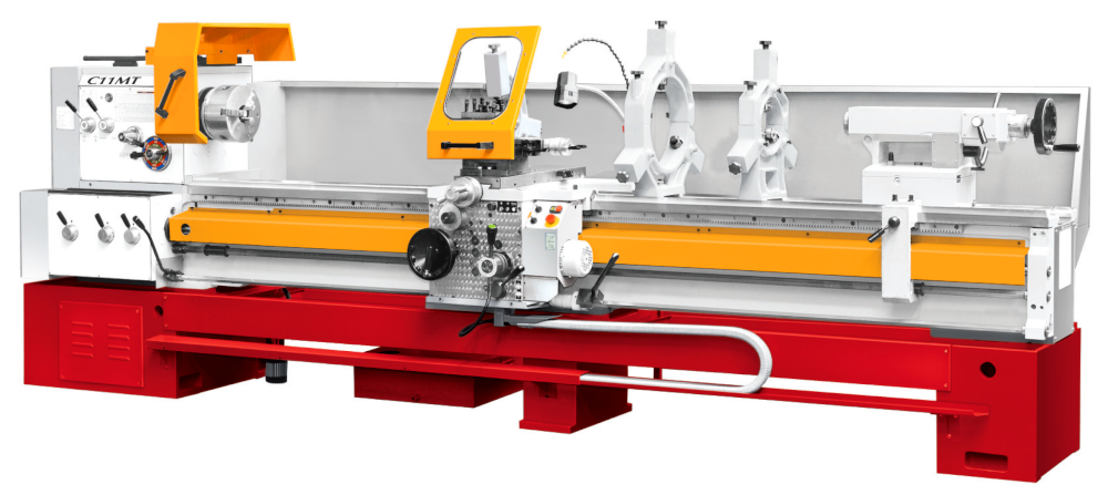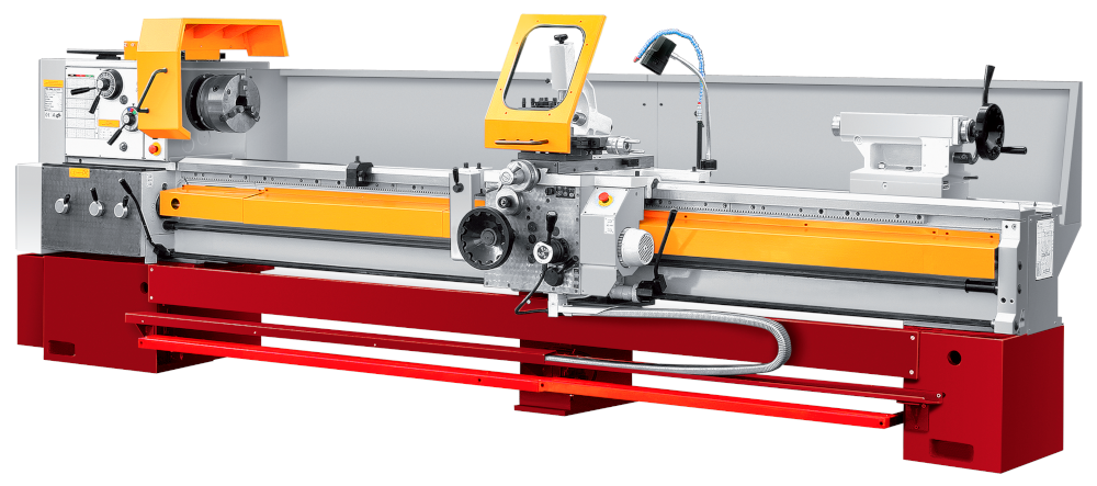 Станок оборудован мощным асинхронным двигателем на 7,5 кВт, предусмотрено 12 режимов скоростей шпинделя, включая режим 36 об/мин для нарезания резьбы плашкой. Биение на шпинделе у данной модели не превышает 9 микрон, цена деления нониуса – 0,02 мм. Коробка подач имеет 65 предустановленных режимов работы в продольной и поперечной плоскости, что позволяет нарезать все основные типы резьб. Для облегчения смены режимов предусмотрен толчковый режим пуска двигателя. Для удобства работы оператора GH-26120ZH DRO оборудуется устройством быстрого перемещения суппорта, а также педалью тормоза и экстренного отключения. Массивная станина станка отливается из высококачественного чугуна и служит эффективным гасителем вибраций, а также помогает отводить тепло от шпинделя и и инструмента. Направляющие станины проходят закалку токами высокой частоты, затем шлифуются.
