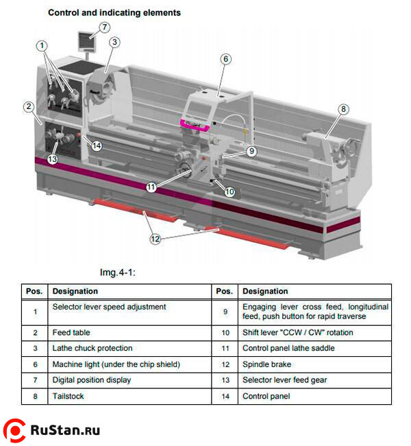 Станок имеет механический тормоз шпинделя с отключением главного электродвигателя и удобно расположенные аварийные кнопки «СТОП». - На токарно-винторезном станке по металлу OPTIturn TH 6620D и TH 6630D применена централизованная смазка направляющих.