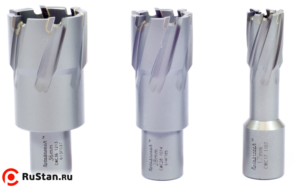 Кольцевые фрезы по металлу Rotabroach изготавливаются с напаянными твердосплавными пластинами из карбида вольфрама.